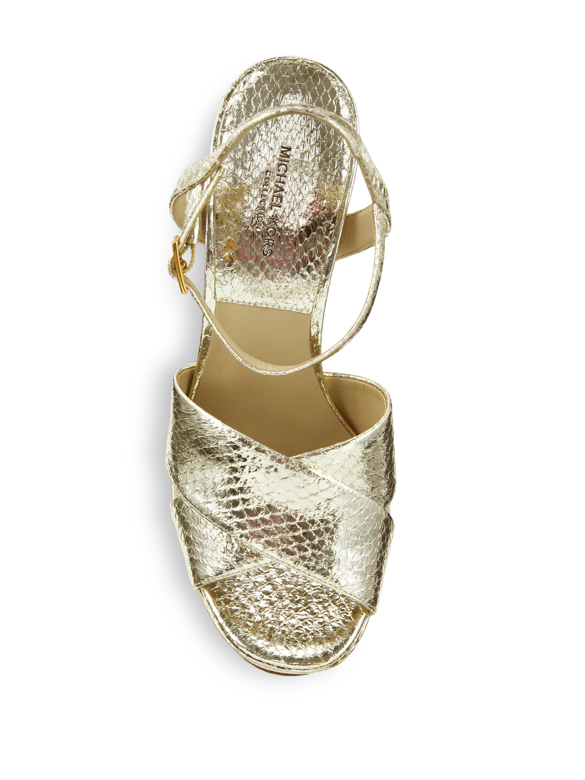 Michael michael kors Lee Leather Flat T-strap Sandal in ... from cdnc.lystit.com Michael kors giovanna espadrille wedge platform sandal orange women 9m n2404*. Find great deals on ebay for michael kors sandals. Whether you're looking for shoes with a modest heel or some with an ultra high heel, this collection is bursting with chic possibilities you'll love. Brand new michael kors sandals. Tap offer to copy the coupon code. Shop sandals of michael kors and enjoy our 100 day return policy worldwide shipping more than 250 brands. Michael michael kors specializes in clothing, accessories and shoes for all occasions. Save money online with michael kors sandals deals, sales, and discounts october 2020.